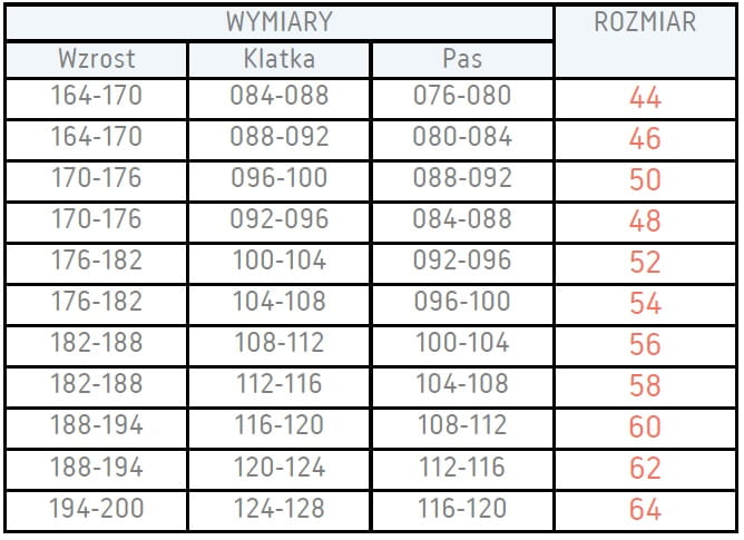 - rozmiary: 44-64