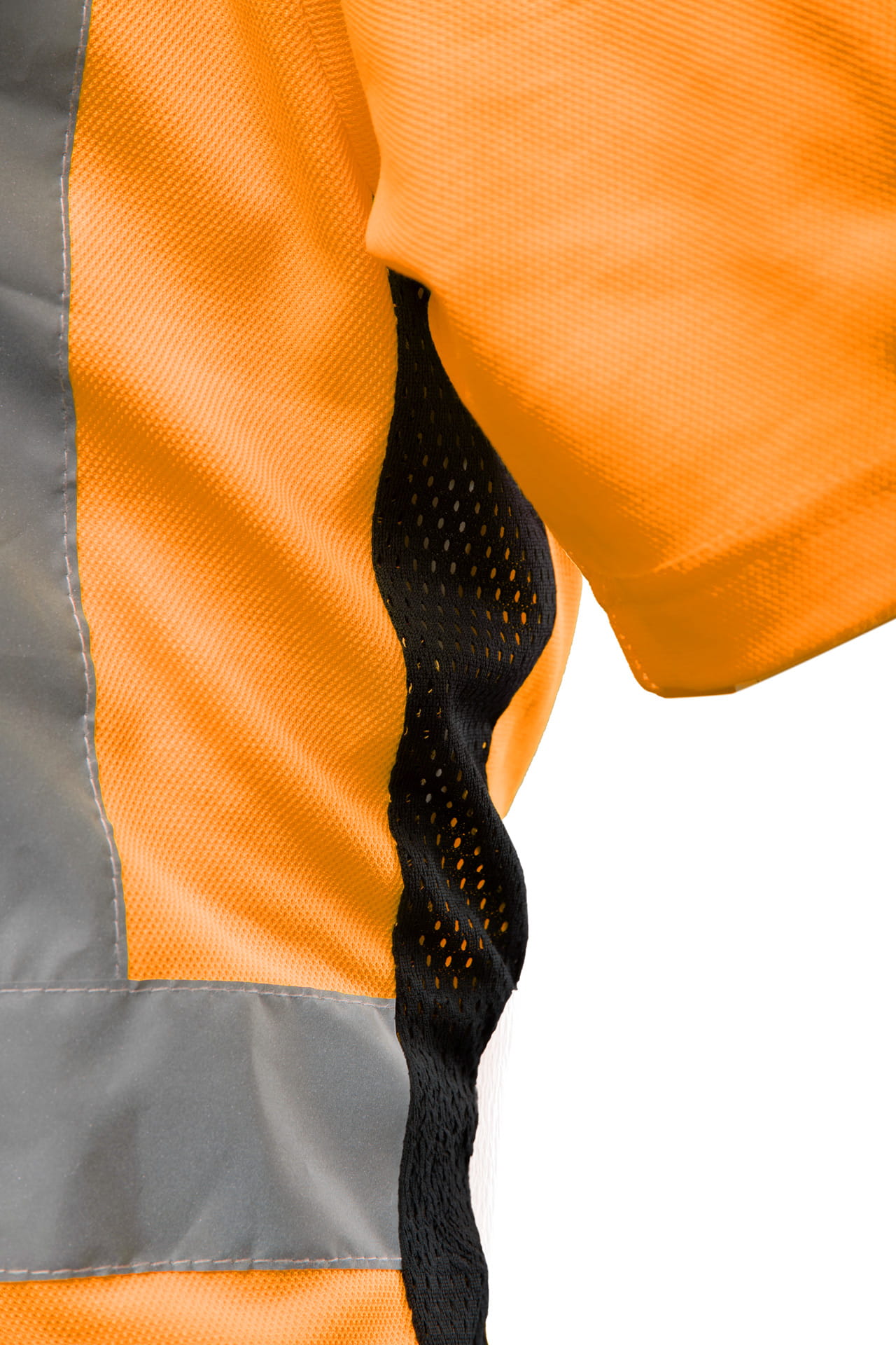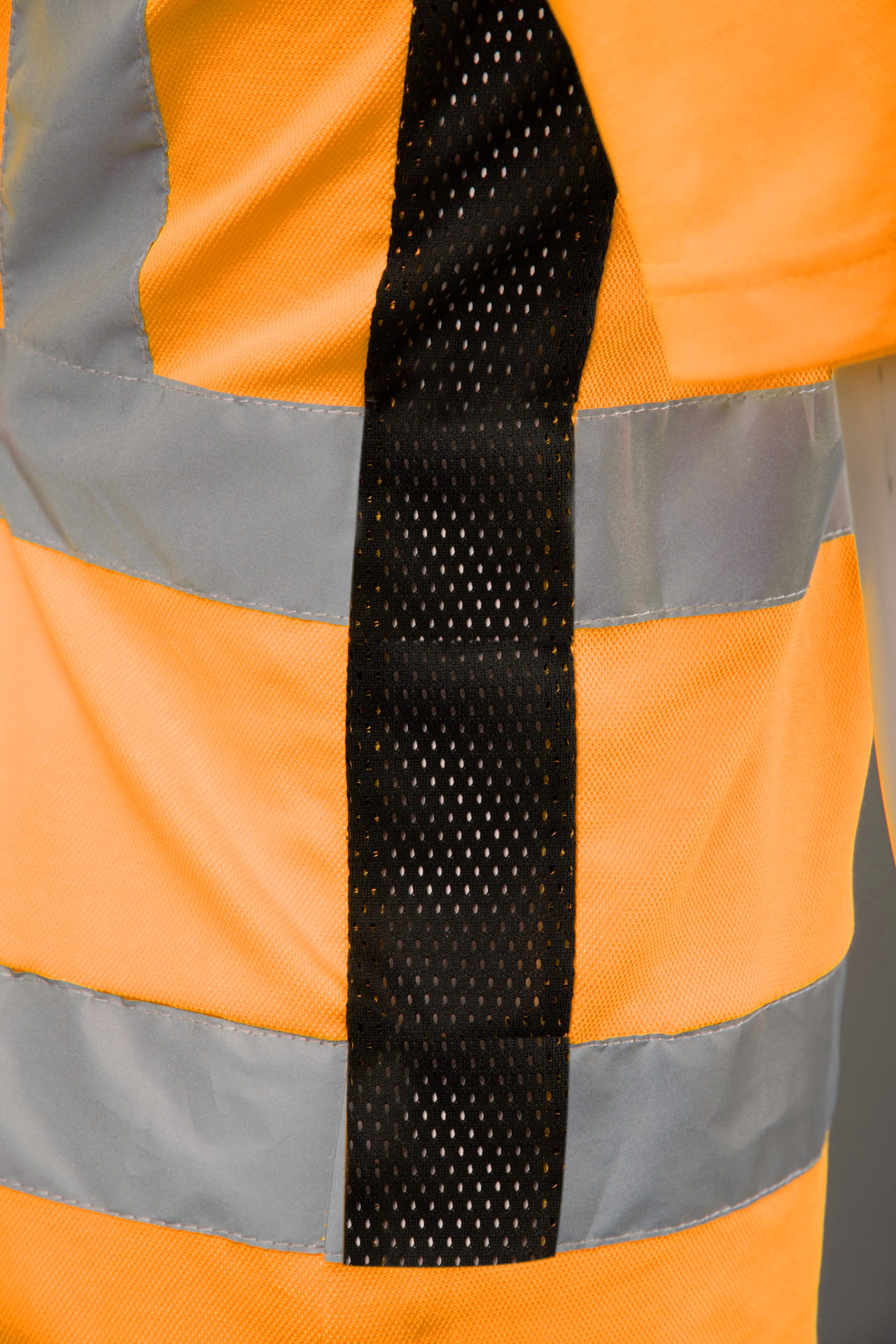 Dzięki pionowym i poziomym pasom odblaskowym, koszulka znacząco zwiększa widoczność pracownika – zarówno w dzień, jak i po zmroku.