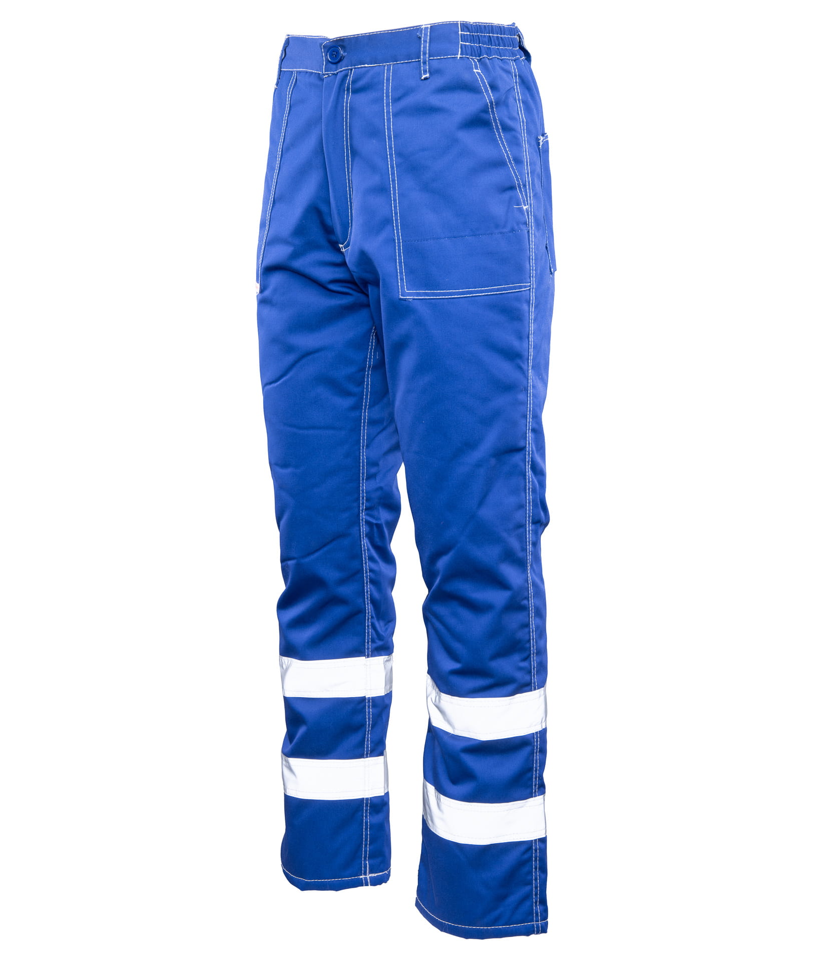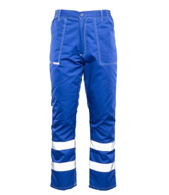 Spodnie robocze do pasa wykonane z trwałego materiału, odpornego na wielokrotne pranie i intensywne użytkowanie. Idealne do pracy w warunkach ograniczonej widoczności — wyposażone w podwójne pasy odblaskowe na nogawkach zwiększające bezpieczeństwo użytkownika.