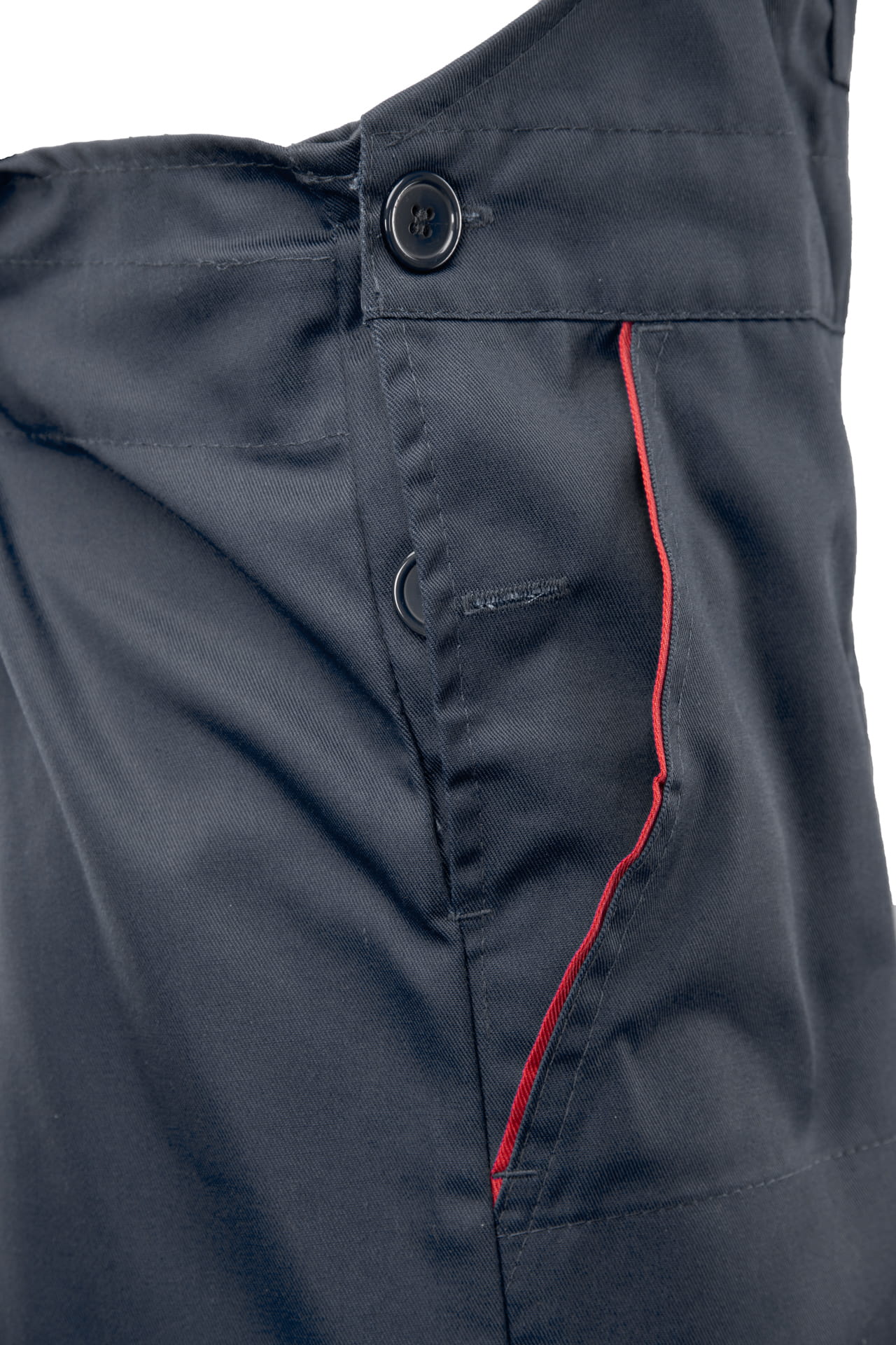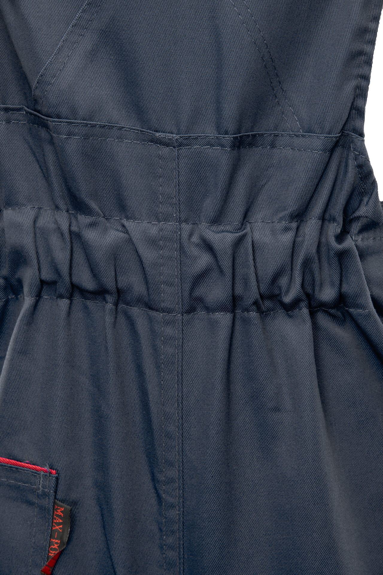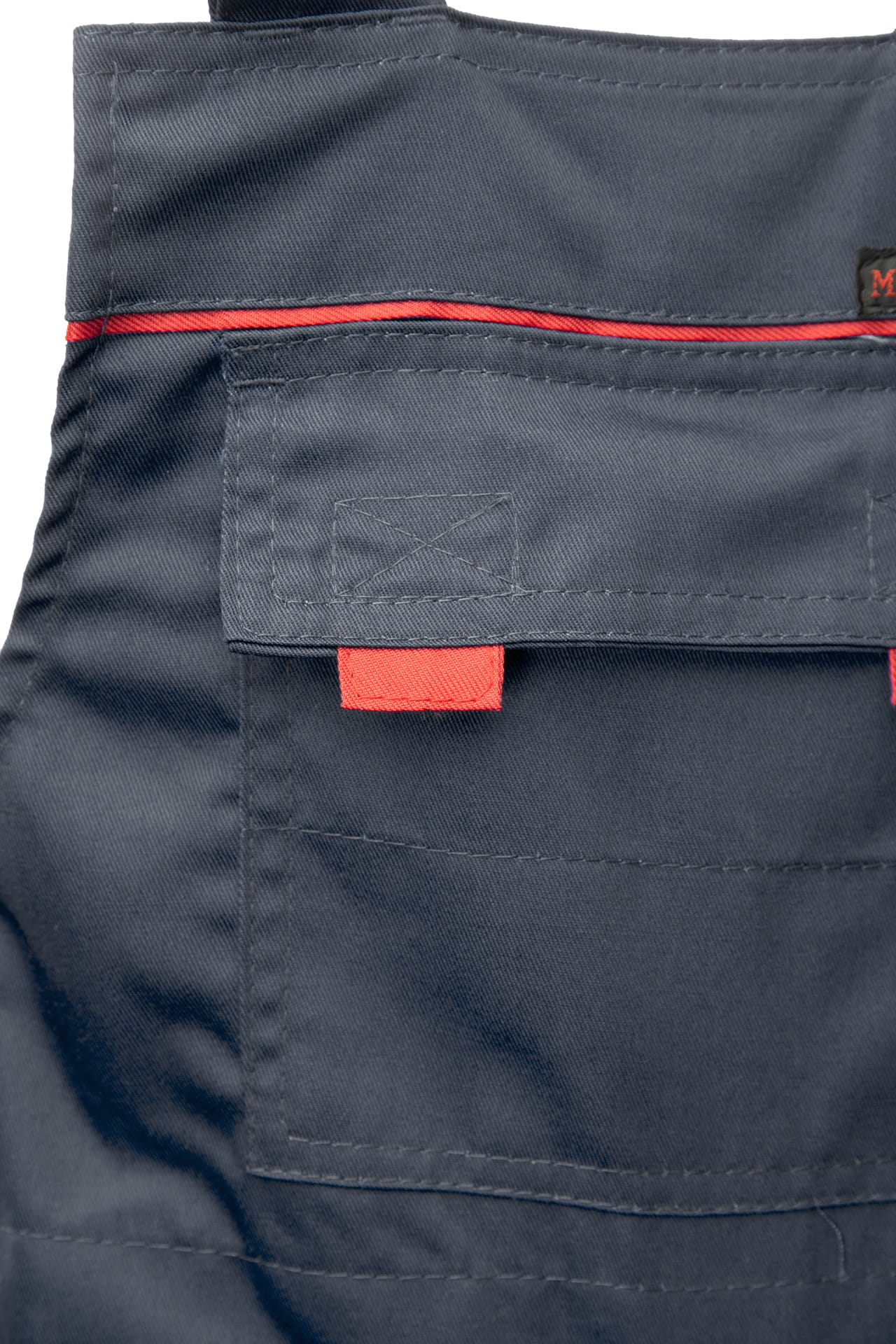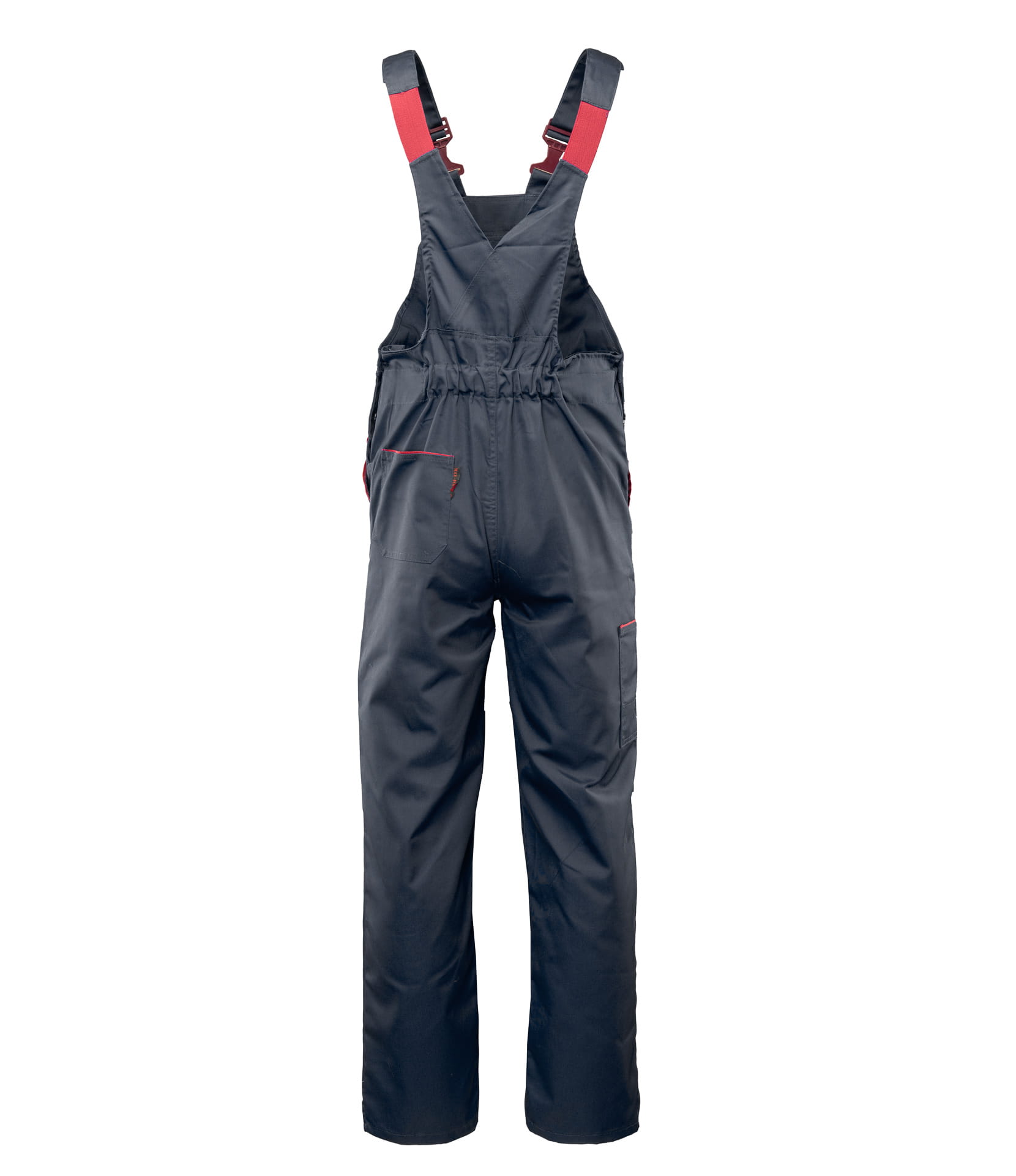 Ogrodniczki posiadają przemyślany układ kieszeni: na miarkę „metrówkę”, dokumenty, dwie kieszenie boczne, kieszeń w tylnej części spodni oraz górne kieszenie zapinane na rzepy. Regulacja obwodu pasa za pomocą guzików i gumki wszytej z tyłu zapewnia komfort podczas pracy.
