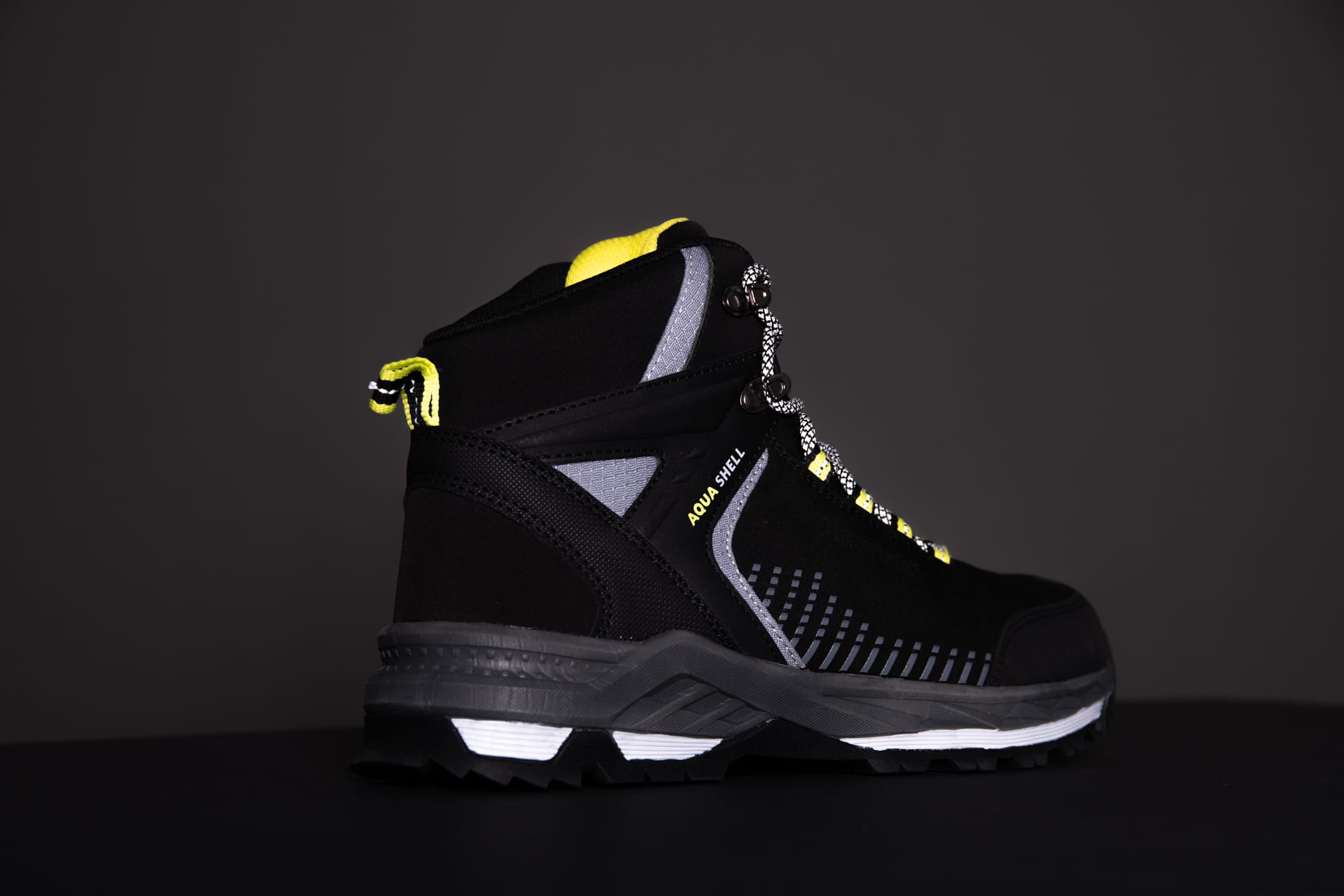 Podeszwa wykonana z połączenia EVA i gumy gwarantuje lekkość, elastyczność oraz wysoką przyczepność do podłoża. Wyposażona jest w właściwości antypoślizgowe (SR) oraz odporność na olej napędowy (FO), co zapewnia bezpieczeństwo w środowisku pracy. Dodatkowe elementy odblaskowe zwiększają widoczność i bezpieczeństwo użytkownika po zmroku.
