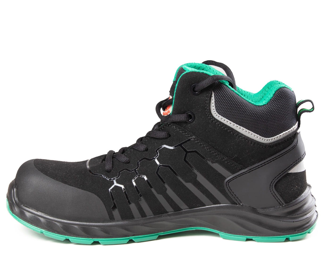 Buty posiadają także elementy odblaskowe, zwiększające widoczność i bezpieczeństwo w miejscu pracy.